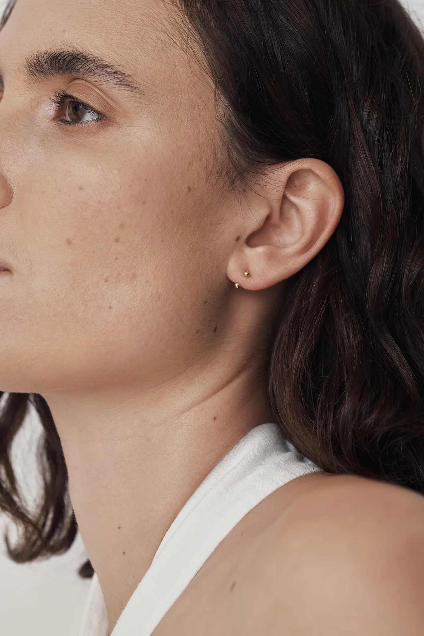 耳元に沿うCカーブデザインのピアス。キャッチはねじ式(スクリュータイプ)を採用。軽やかなつけ心地ながら、外れにくく、日常の中でも安心してご着用いただけます。シンプルなピアスとは異なる、静かでさりげない個性を耳元に。
