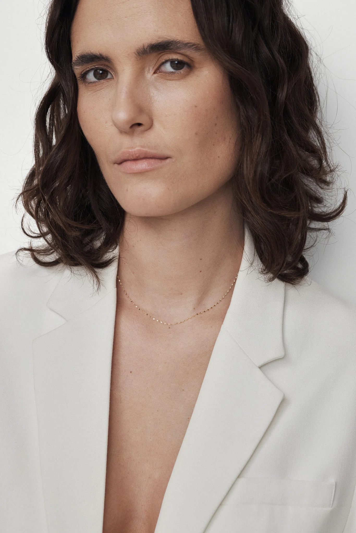 繊細ながら、確かな存在感を放つチェーンネックレス。リンクひとつひとつの面取りと多角カットによって、シャープさと金属の光沢感が合わさり、動くたびに肌の上で輝きます。