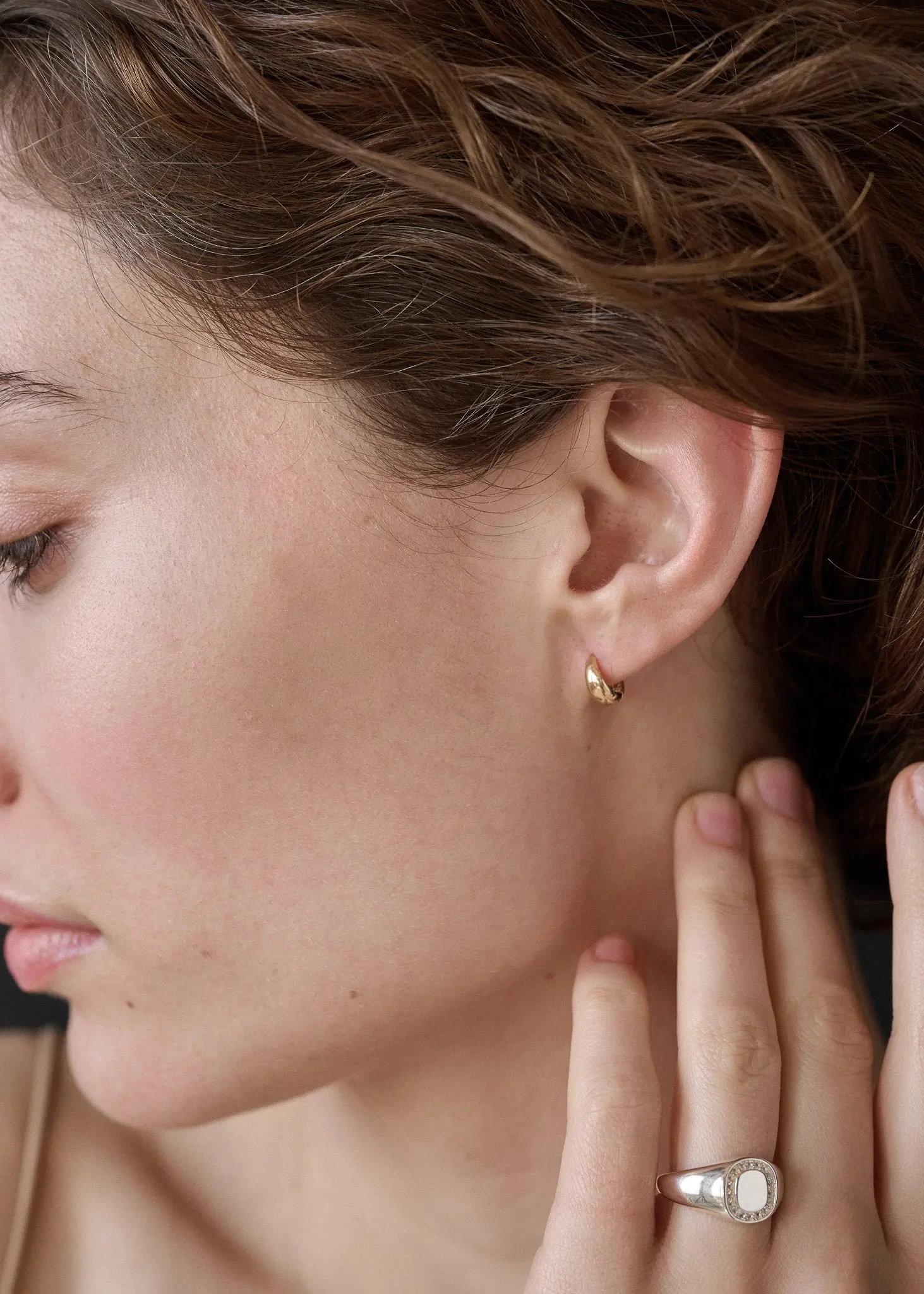 14k素材で作られたミニピアスは、軽くて付けていることを忘れるほどの軽やかさが特徴。ワンタッチ式で、入浴や就寝時でもストレスフリー。輝きを失わない素材を使用しているため、長期間お使いいただいても変色せず、常に美しい輝きが持続します。最小限のデザインであるため、シーンを問わずお使いいただけます。