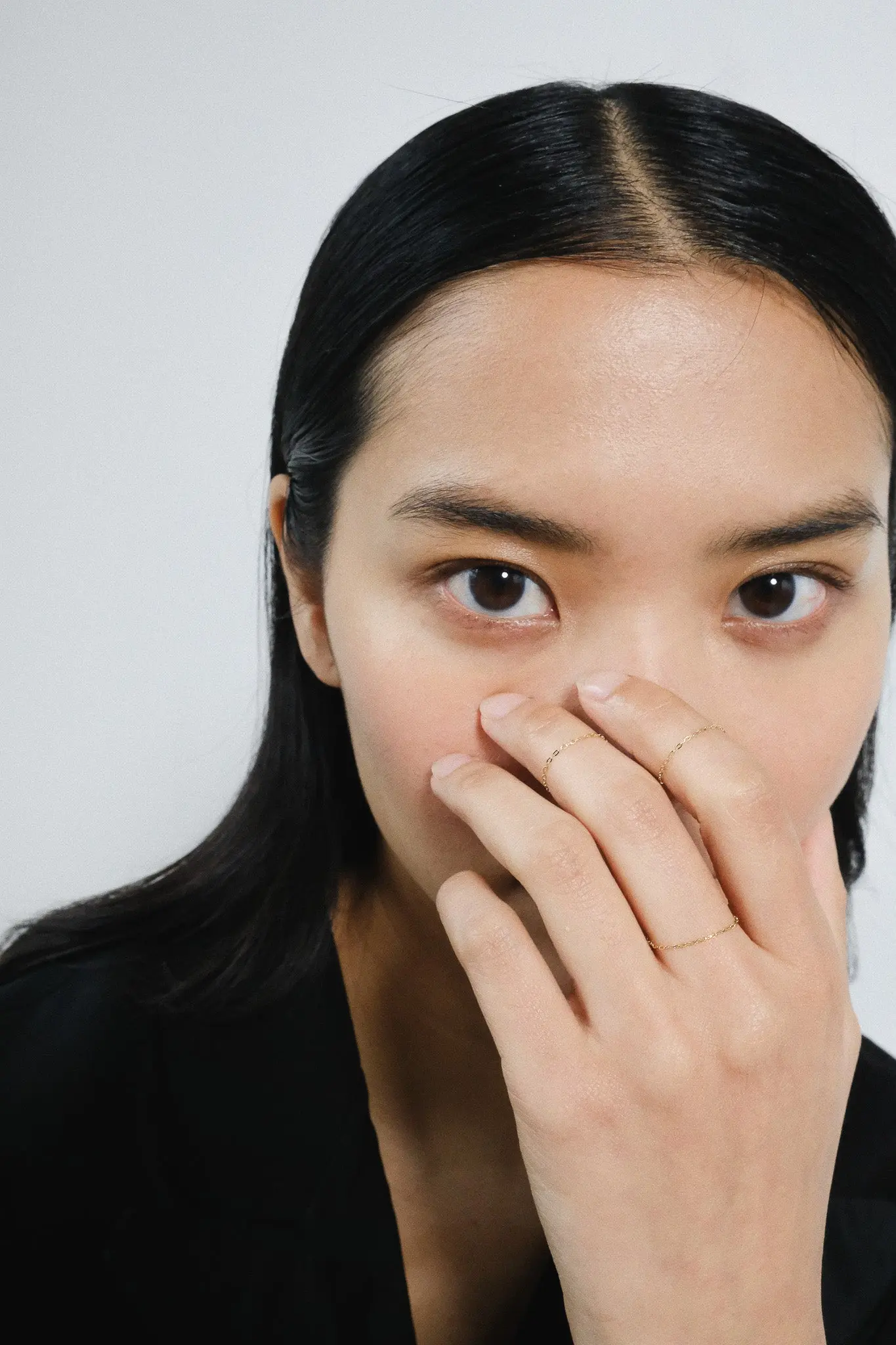 ずっと着けていたくなる、柔らかなチェーンを使用したリング。チェーンリングならではの動きやすさと、重ね付けの楽しさを。14kならではの優しいゴールドカラー。