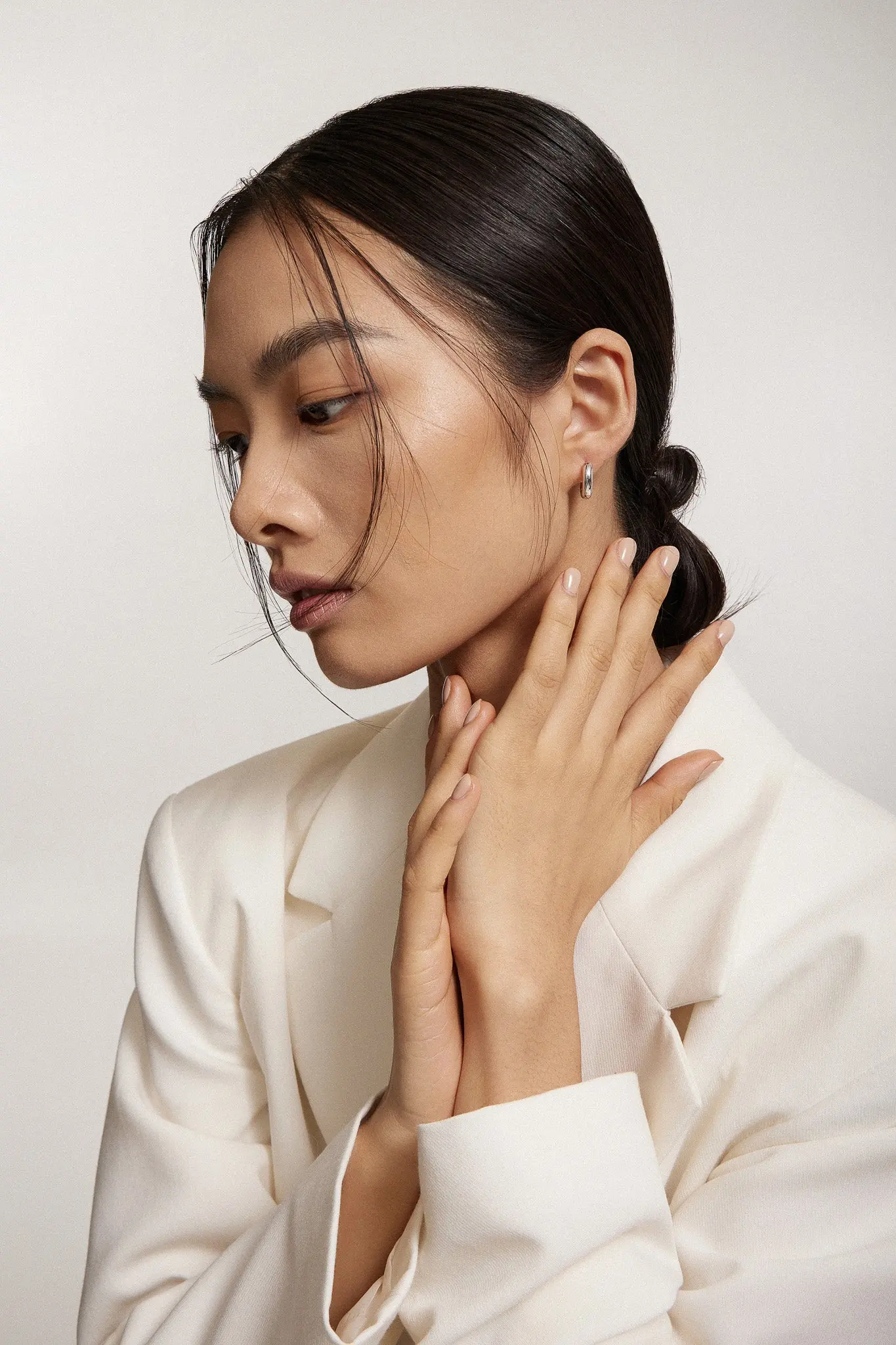 ベーシックなフープピアス。ぷっくりとしたボリュームでシンプルながらも存在感のあるデザインに。