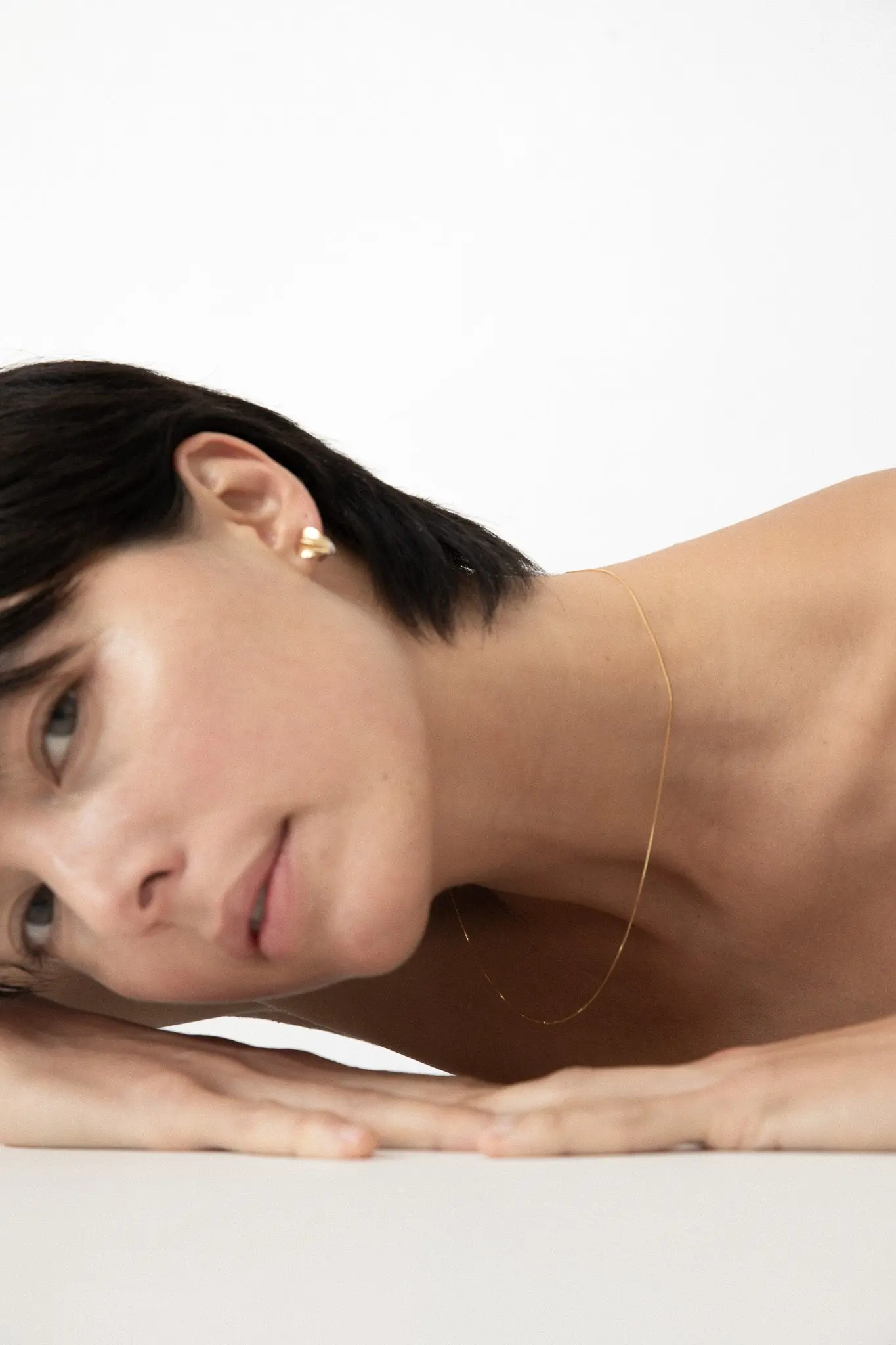 まるで肌の一部のように溶け込む柔らかなチェーン。